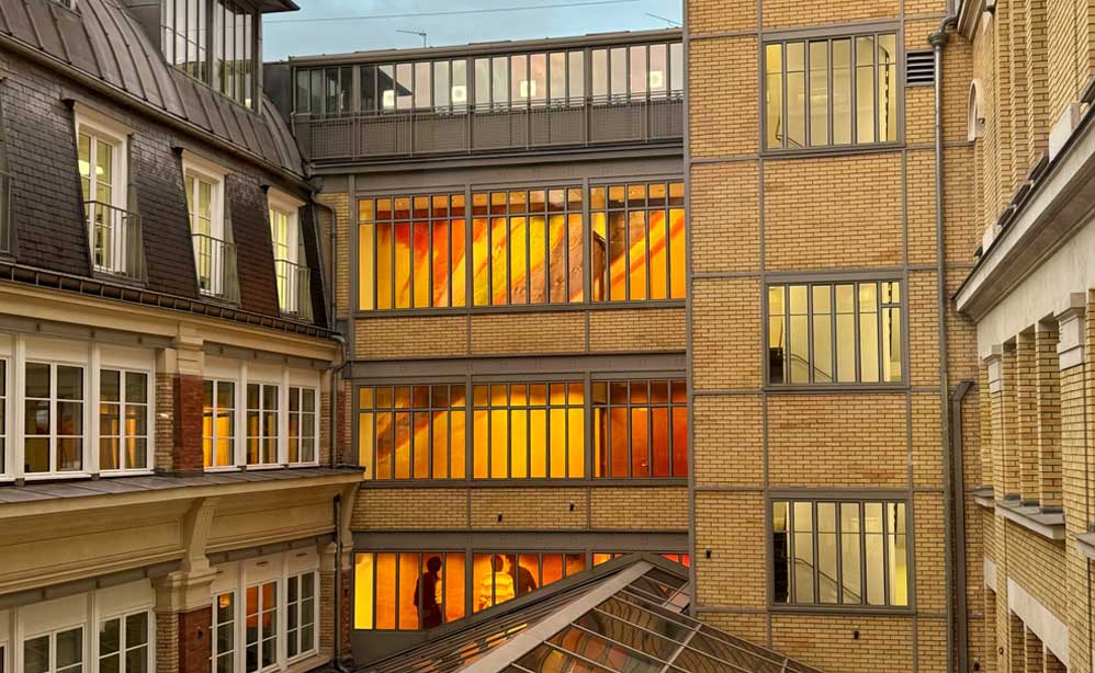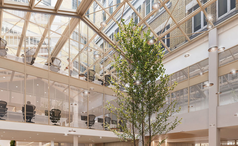 Réaménagement complet des espaces de bureau et de circulation, Aménagement des work-café et des espaces de travail partagés. Réhabilitation du hall, des zones en mezzanine et du socle RdC.